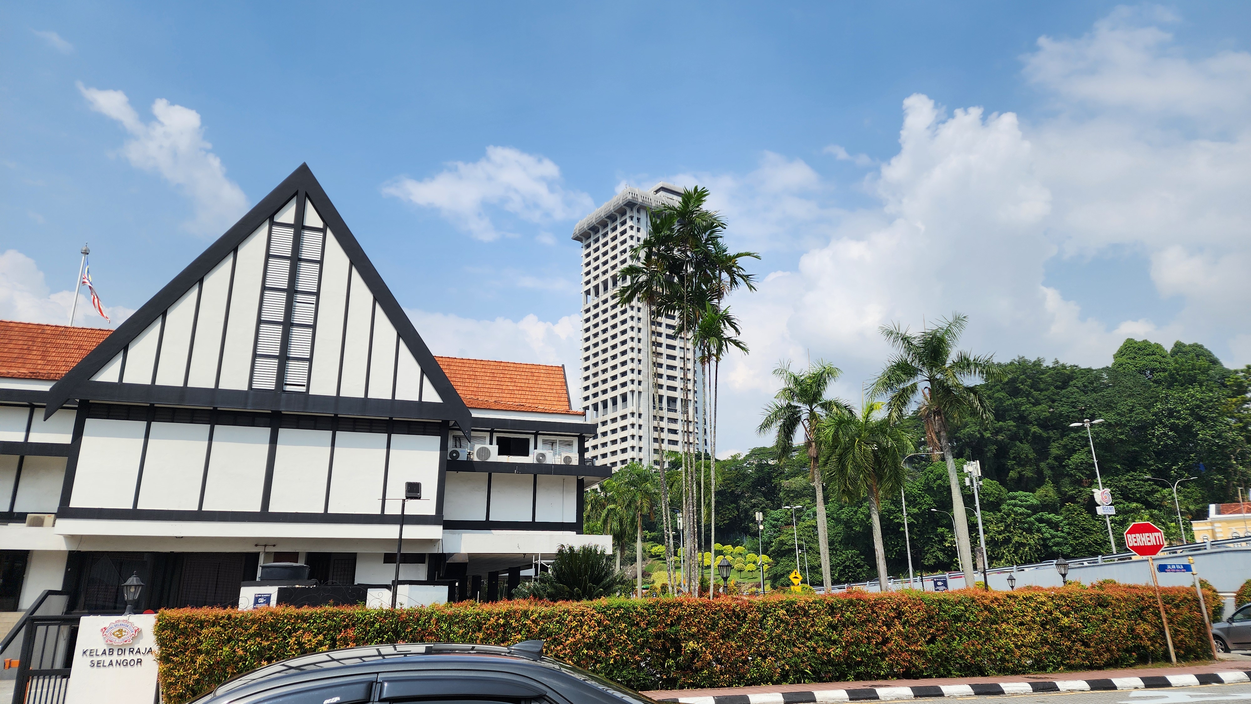 "Selangor building and the palm trees behind it"