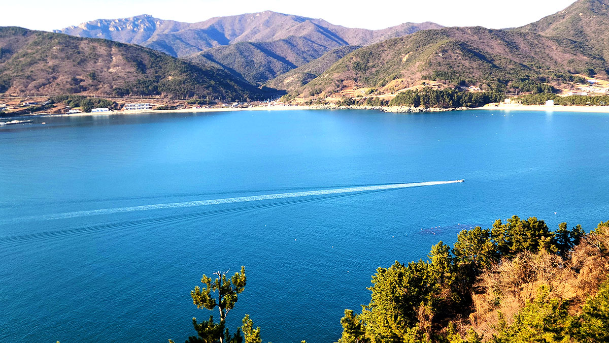 드넓은 바다가 옥색으로 푸르러 보이대요.