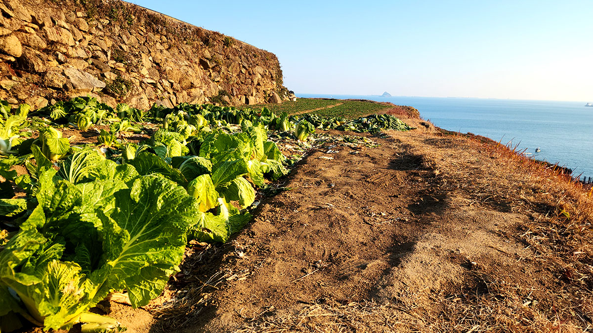 바닷가 언덕의 시금치 밭.