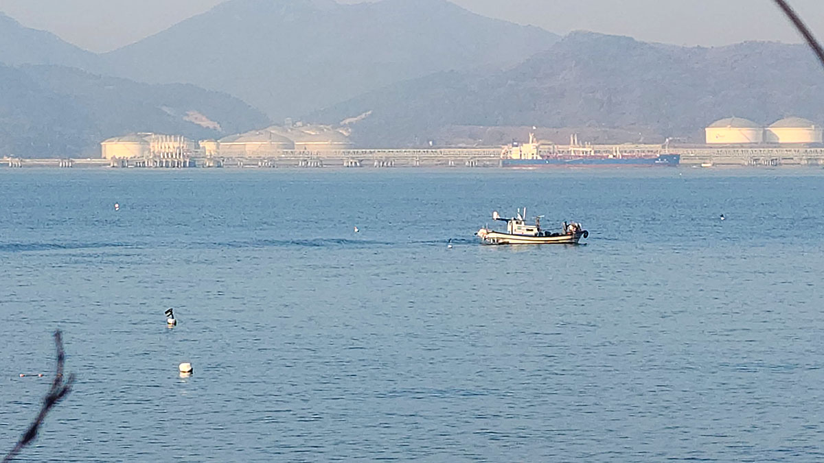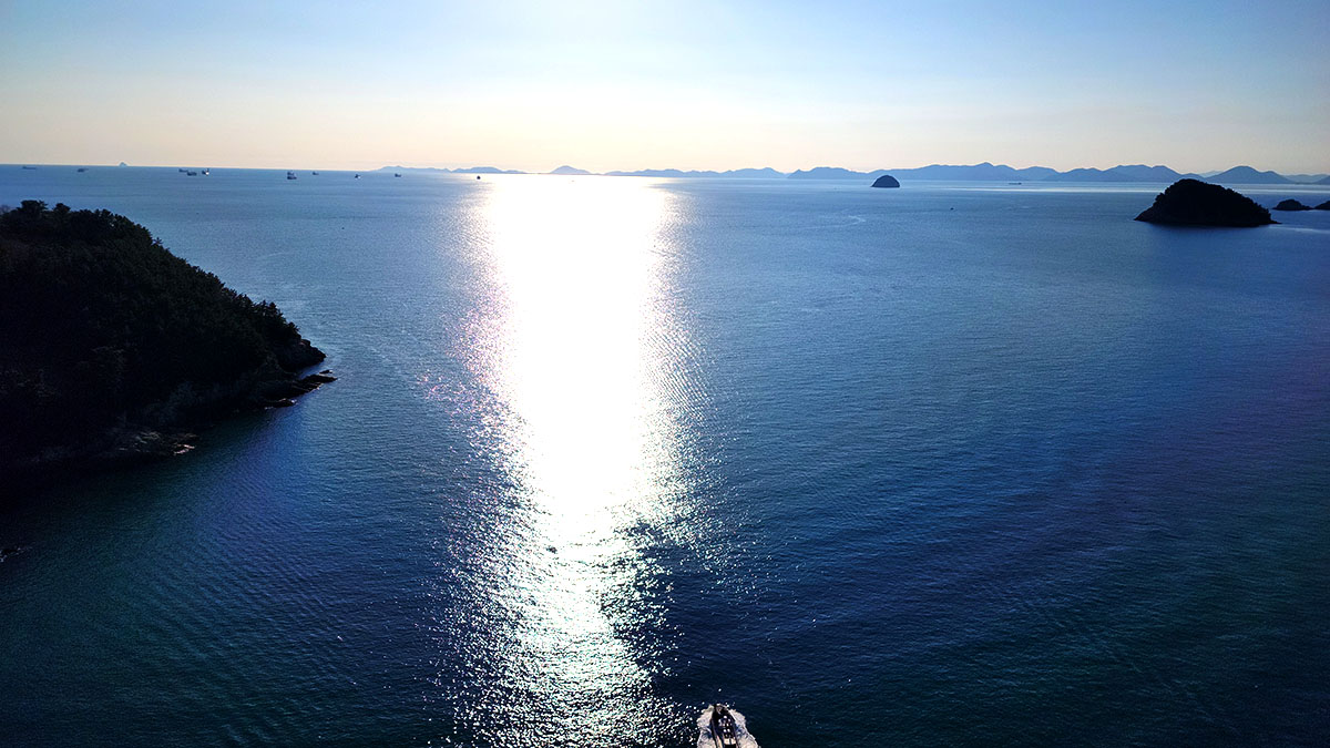여수와 남해 사이 바다로 큰 화물선들이 오고 가는데...