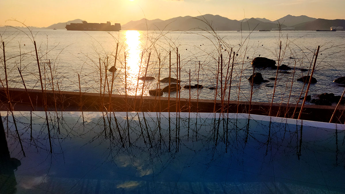 A sunset view over the ocean in Jeju Island