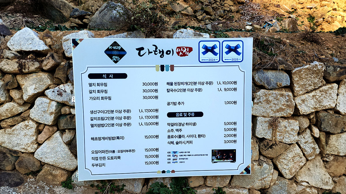 다랭이 마을의 맛집 메뉴와 가격표